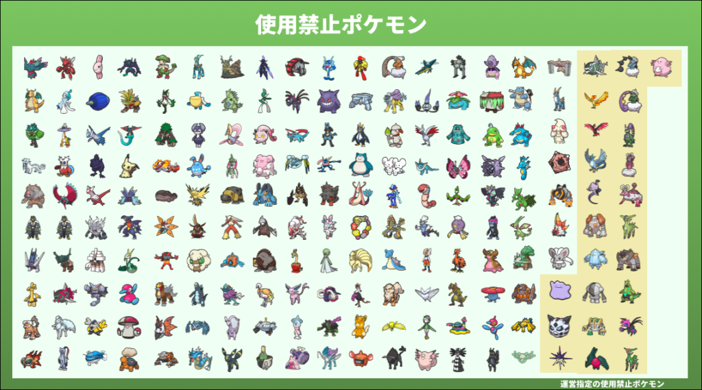 運営側で決定した環境調整枠の24匹のポケモンを使用禁止としています。