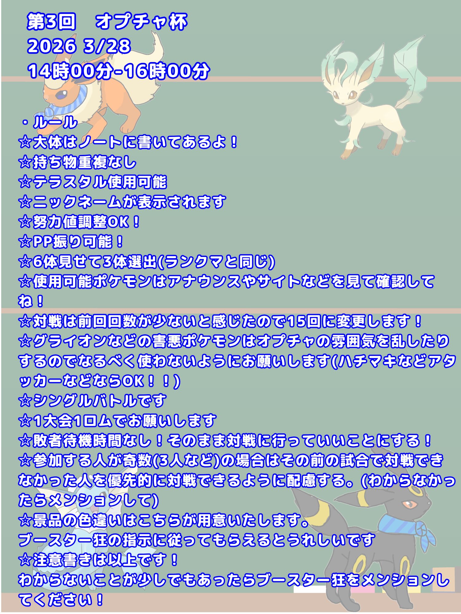 使用可能ポケモンに細かい制限があるので、使用可能ポケモンをよく確認してご参加ください!